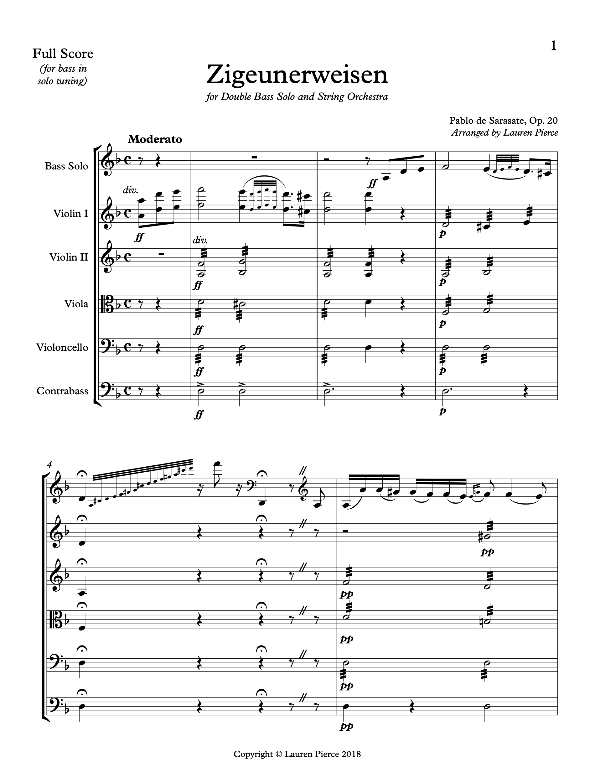 Sarasate: Zigeunerweisen for Double Bass and String Orchestra (arr. by Lauren Pierce)